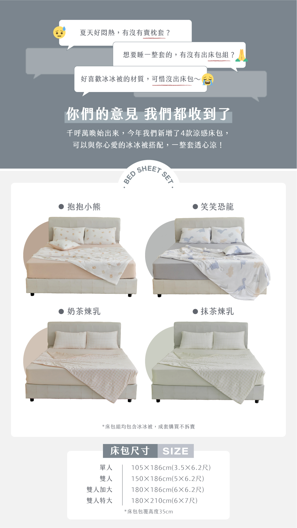 雙人特大四件組:枕套*2+特大床包*1+冰冰被*1