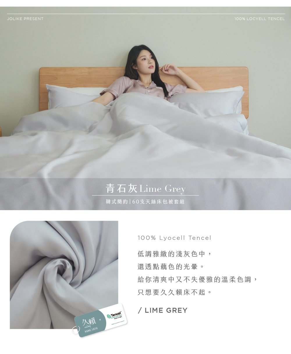 韓式簡約|60支天絲™床包兩用被四件組 - 青石灰