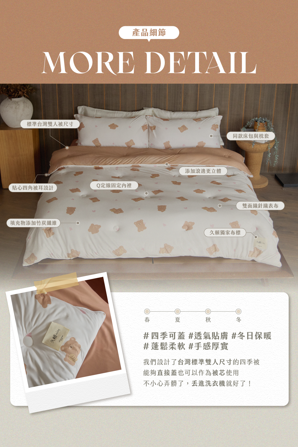 • 扎實手感|雙面織纖維技術,表布堅韌不起球