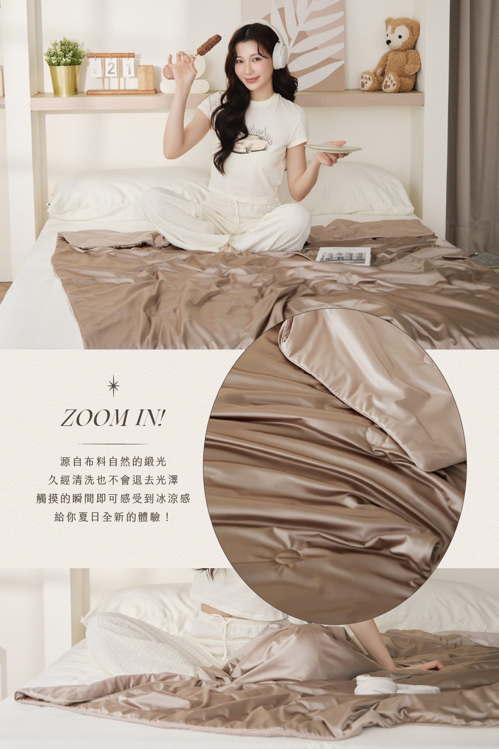 • 可直接機洗,多次洗滌仍保有緞面滑順感。
