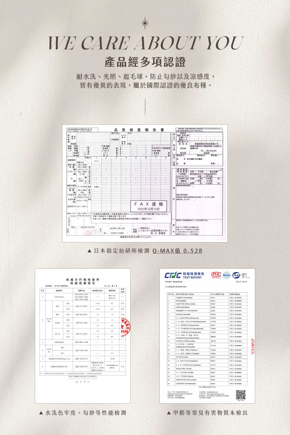 • 布料通過安全檢測,無甲醛、無芳香胺致癌物質,使用更安心。