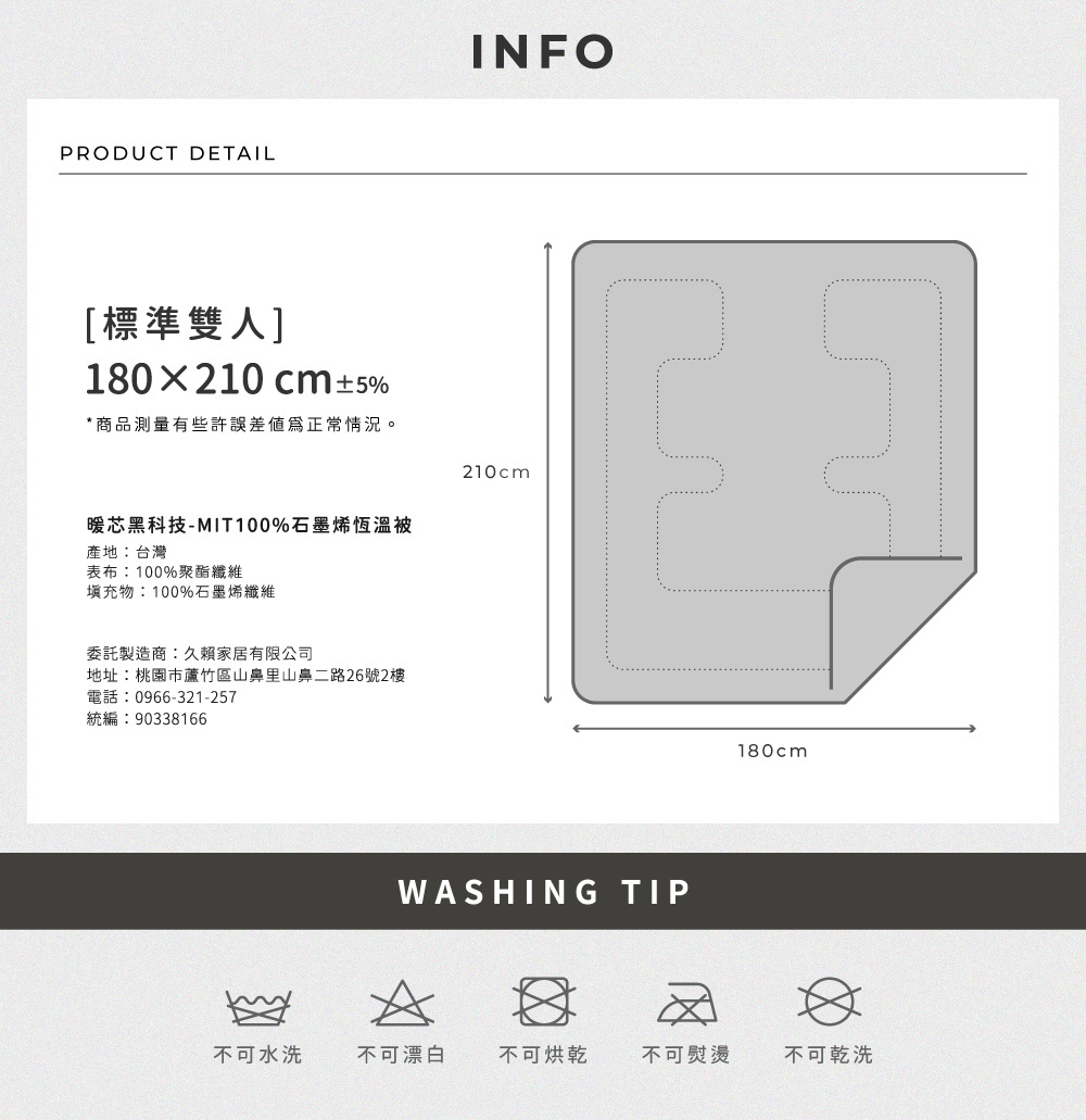【暖芯黑科技】- MIT100% 石墨烯保暖被 ✔